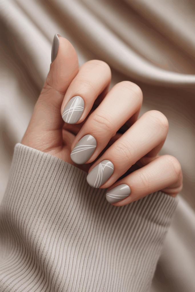 This look features short nails painted in a soft taupe shade. The muted color brings a calm, elegant feel.