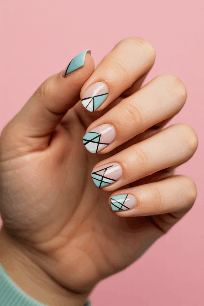 Negative space geometric designs use clear shapes and lines to create a modern look. These designs leave parts of the nail bare, adding contrast and interest. They work well on short nails because the clean shapes keep the style simple and neat.