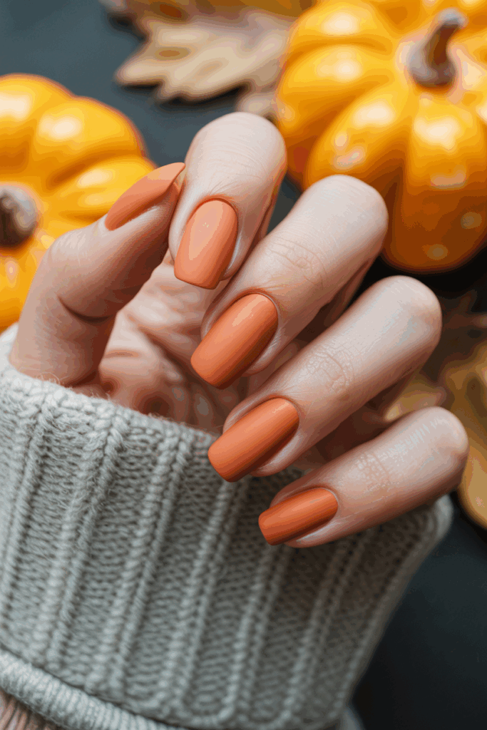 Matte pumpkin spice orange is a popular choice for fall nails. It offers a soft, velvety look that fits the season’s cozy vibe. Applying a matte top coat over an orange polish can create this trendy finish easily. It works well with many autumn outfits.