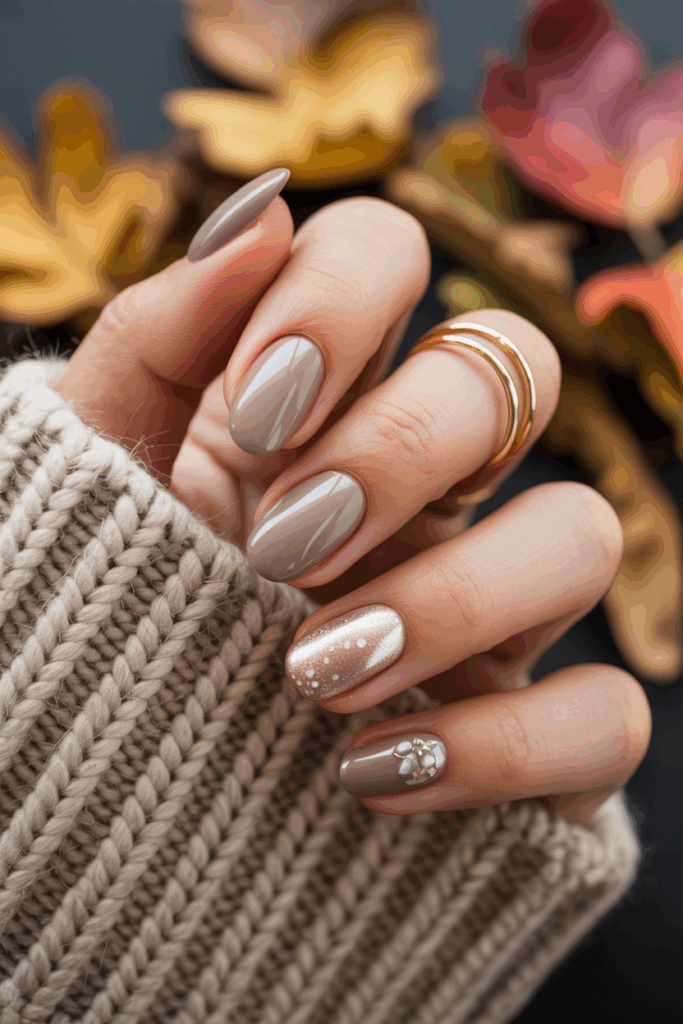 Taupe chrome nails offer a stylish and modern look for fall. The subtle shine of chrome adds depth without overwhelming the soft taupe base.
